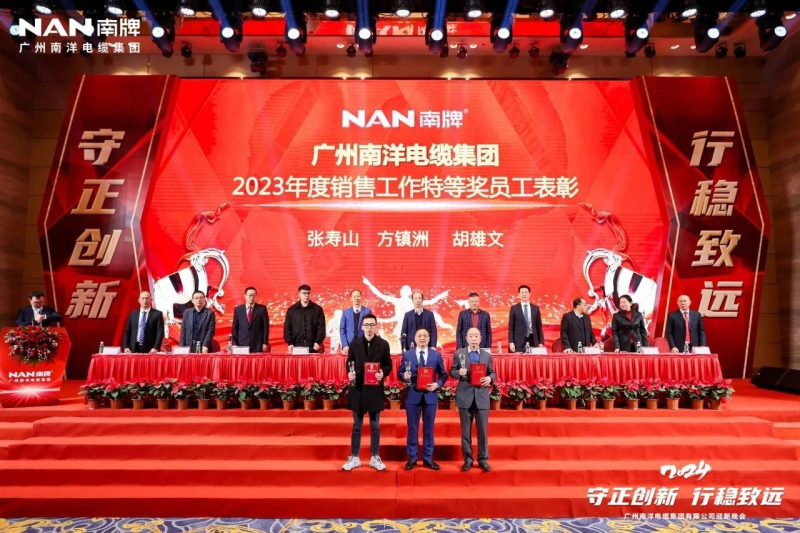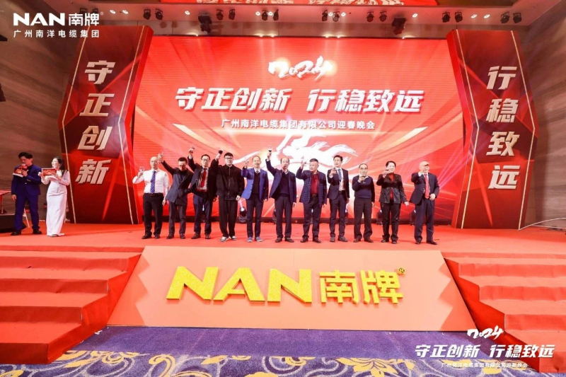 2024年1月27日,广州南洋电缆集团有限公司在广州长风凯莱酒店举行了以“守正创新、行稳致远”为主题的2023年总结表彰大会暨2024年迎春晚会。董事长郑汉武、总经理章先杰、各区域销售经理及经销商、公司管理层及各部门员工共计800余人参加本次大会。