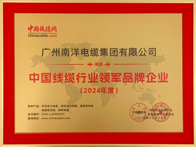 19日晚,备受瞩目的“2024年线缆行业知名品牌颁奖典礼”隆重举行。本次颁奖典礼旨在表彰线缆行业内表现卓越、创新引领的企业,进一步推动线缆行业的繁荣发展。经过层层筛选和严格评审,广州南洋电缆集团凭借在技术创新、产品质量、市场表现等方面荣获2024年线缆行业(第一批)领军品牌。今年公司还连续七年荣获广东线缆产业最具竞争力企业20强第一名,中国线缆产业最具竞争力企业20强,荣获2024年广东企业500强第291位,荣获2024广东制造业民营企业100强第85位,荣获国家级专精特新“小巨人”企业称号,荣获广东省制造业单项冠军企业称号,荣获2024年广东省制造业企业500强第80位。