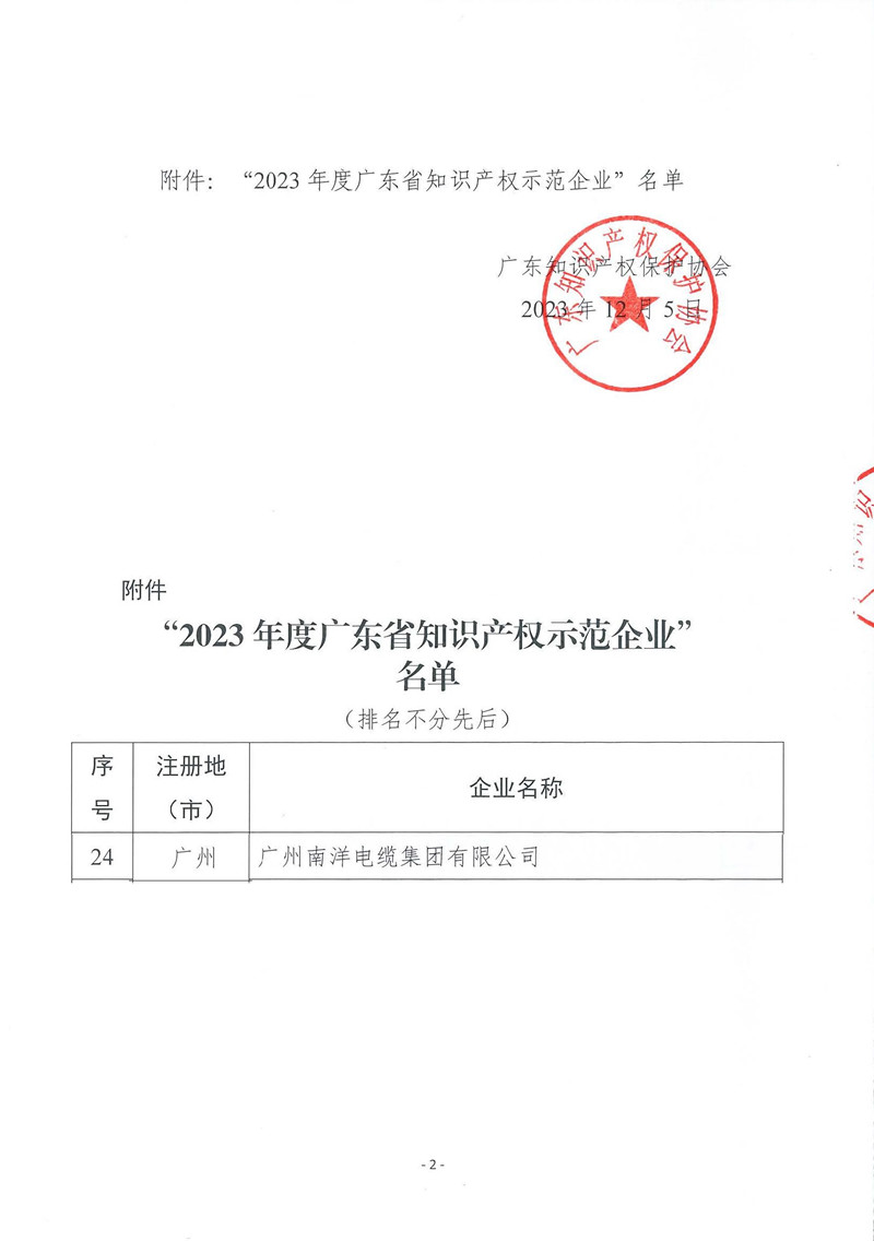 作为广东省电线电缆龙头企业,公司将继续发挥行业引领示范作用,持续加大对产品研发和知识产权的投入,不断完善企业核心技术研发创新体制机制,加强知识产权的保护和管理,不断提升知识产权综合竞争优势,带动公司技术创新、产品升级和市场竞争力提升,引领行业高质量发展。